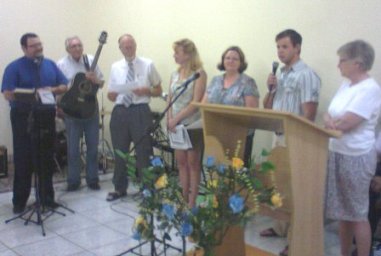 Os irmãos que vieram do Canadá se apresentando à Igreja